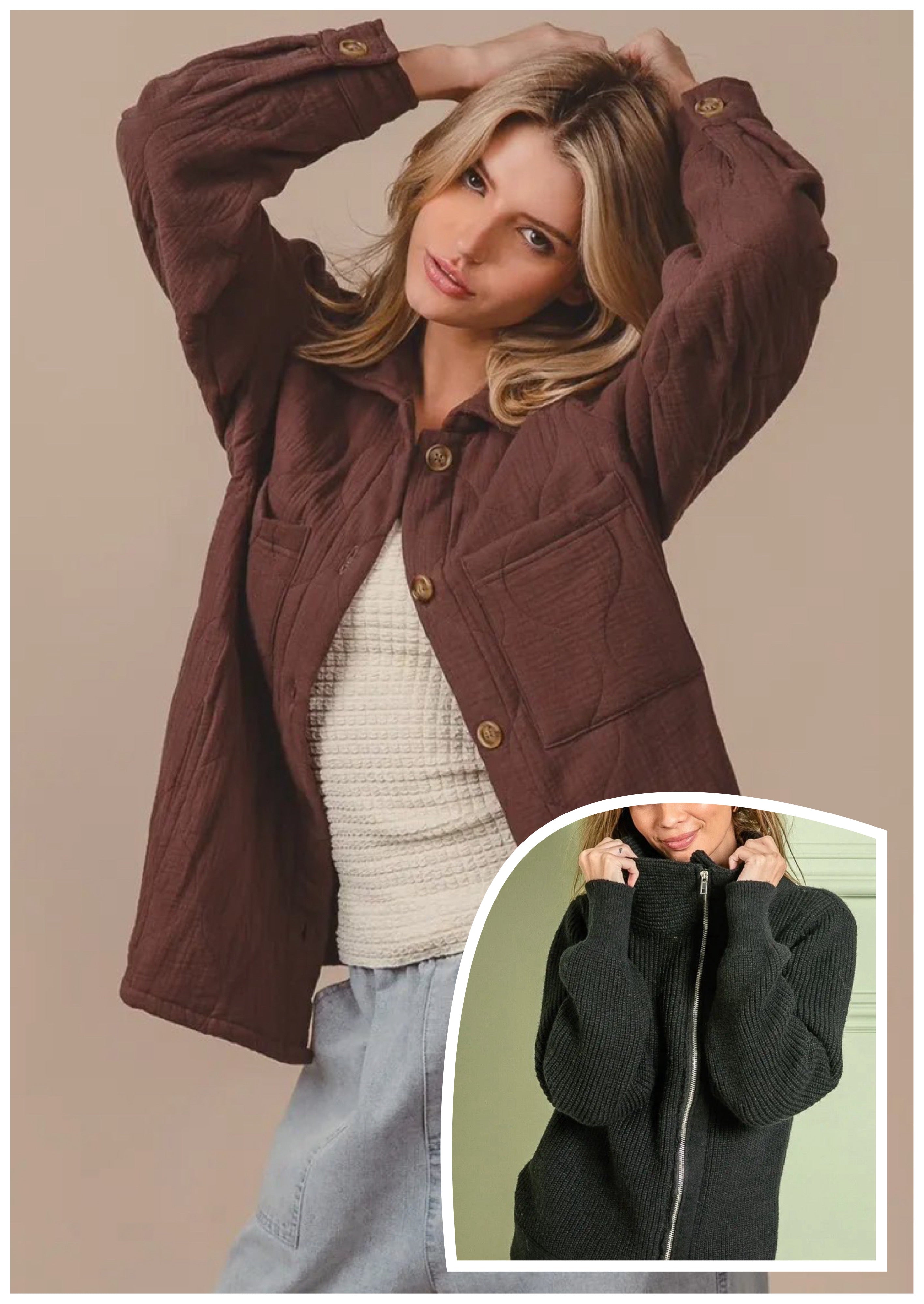 BiBi Quilted Wrinkle Gauze Long Sleeve Shacket